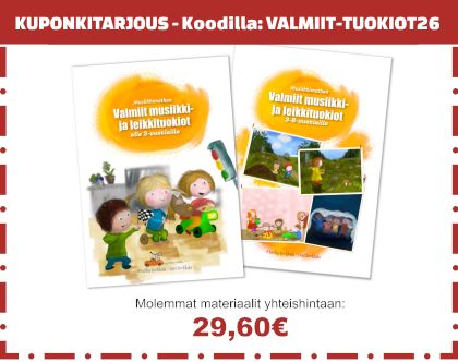 ”Olen suunnitellut kymmenen musiikkituokiota, joissa lauletaan, loruillaan, soitetaan, rytmitellään, tanssitaan ja leikitään musiikki- ja liikuntaleikkejä. Lue lisää