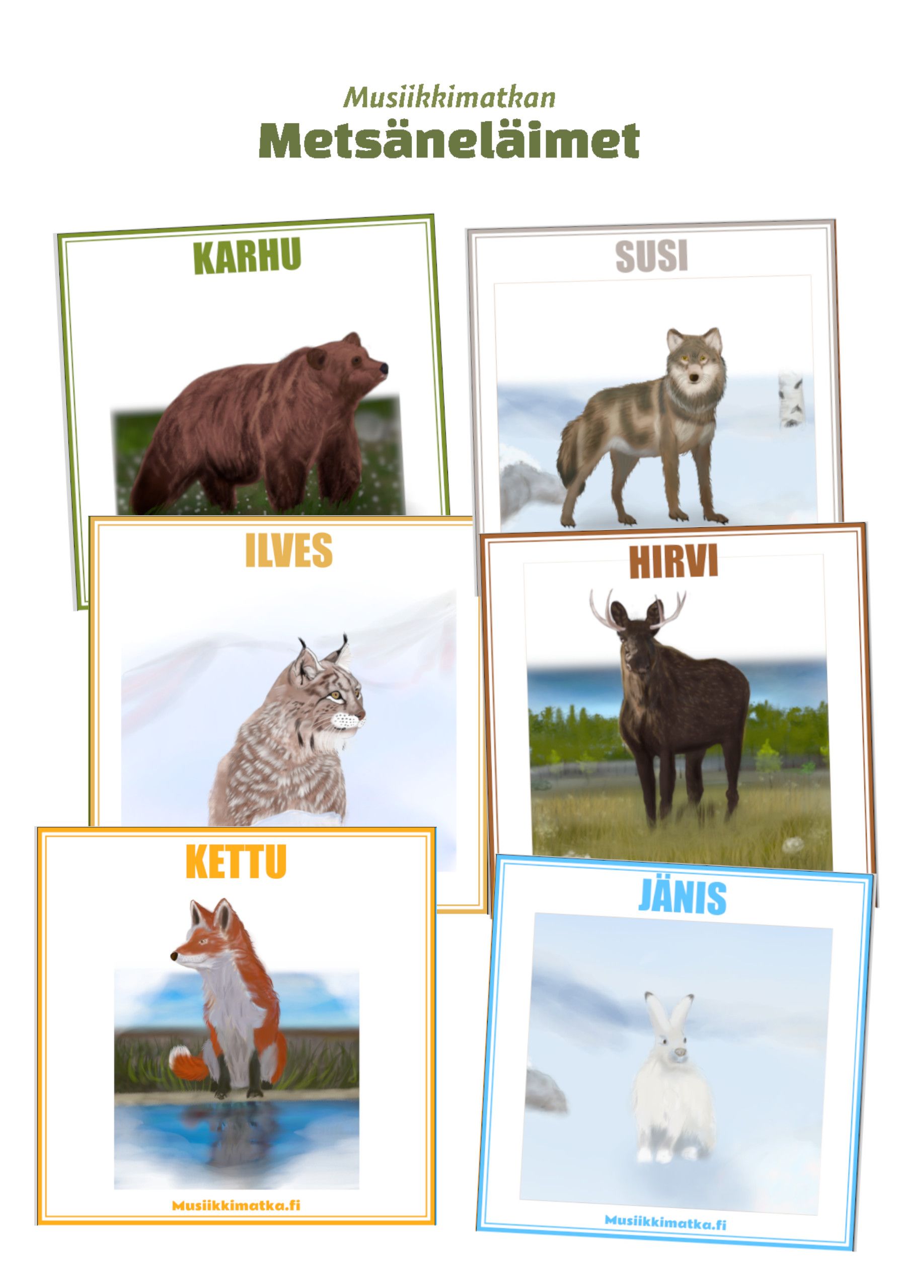 – Metsäneläimet -kortit 6kpl A4 pdf-tiedosto