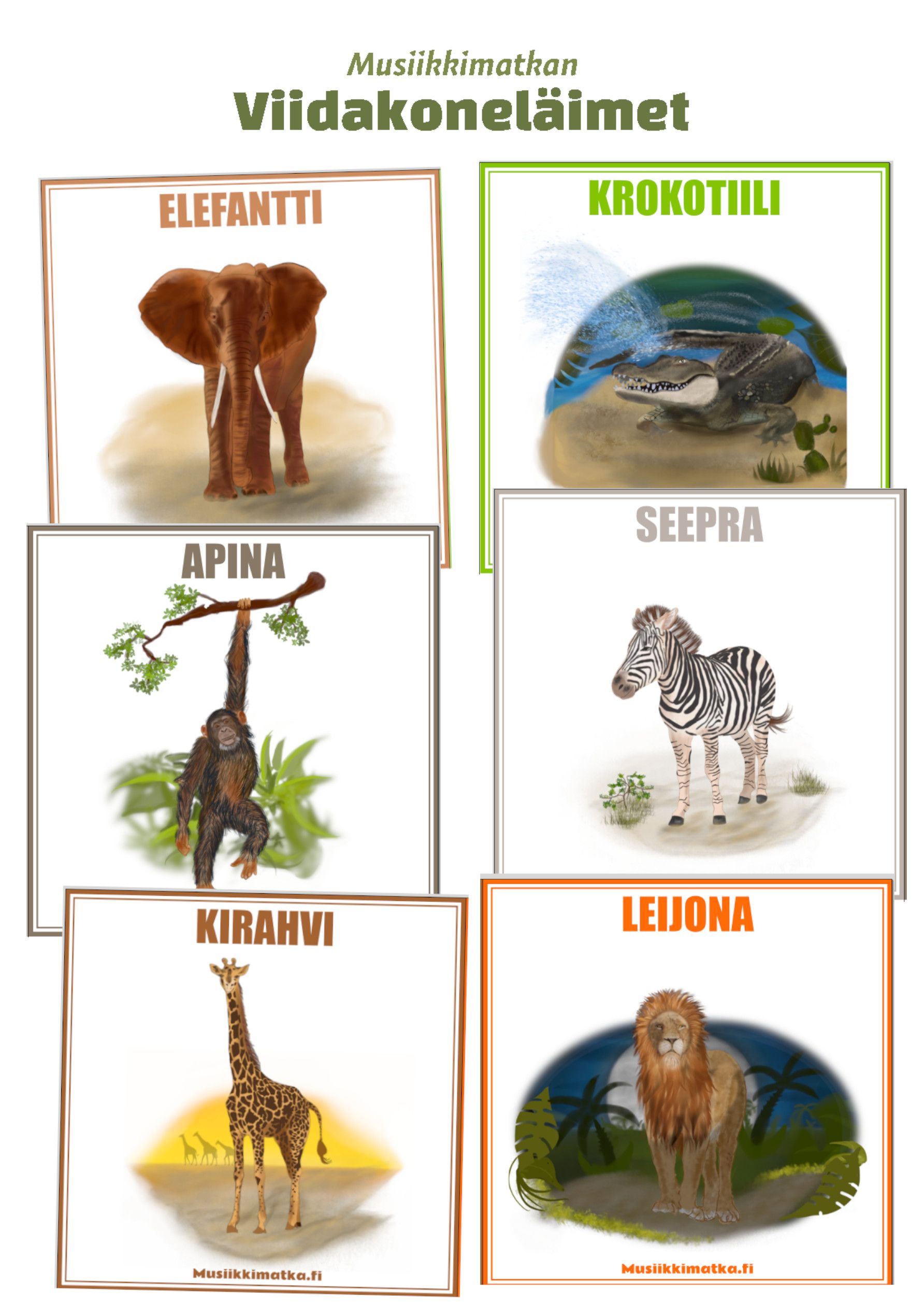 – Viidakoneläimet -kortit 6kpl A4 pdf-tiedosto